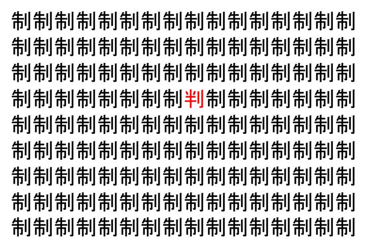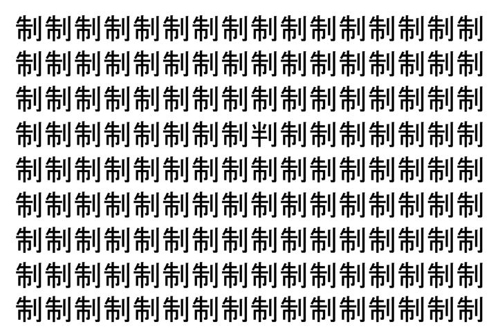 画像の中には、「制」という漢字が縦に9行、横に16個並んでいます。 全部で144個となりますが・・・、そのうち1つは「異なる漢字」となってますよ!!