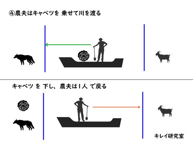そして、農夫がいなくなると、オオカミはヤギを食べてしまうし、ヤギはキャベツを食べてしまいます。