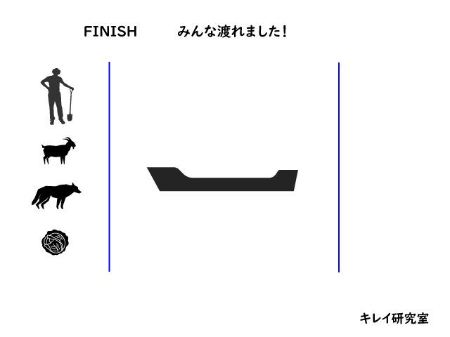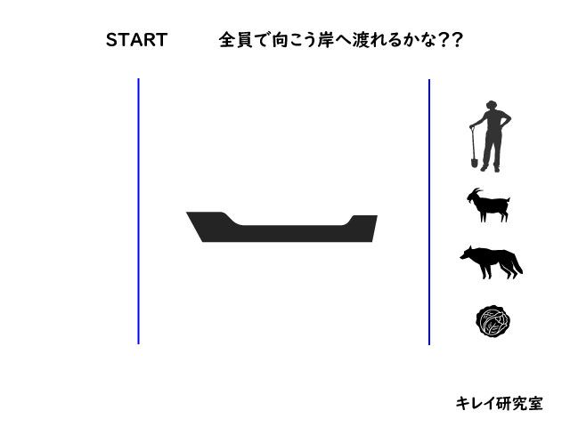 ボートには、一度に農夫以外に乗せられるのは、動物一匹かキャベツ一個のみ。