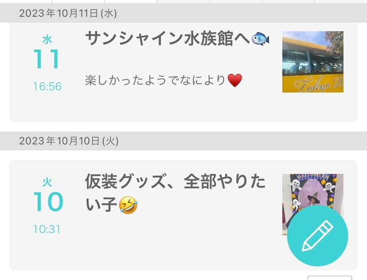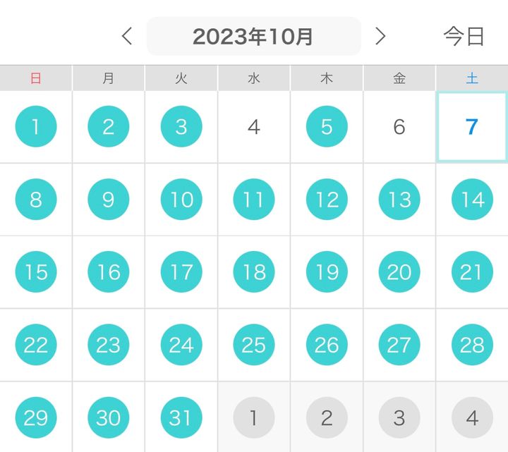 カレンダーから書きたい日にちをクリックし、入力します。これは2023年10月分です。日記を書いた日は青丸になります。