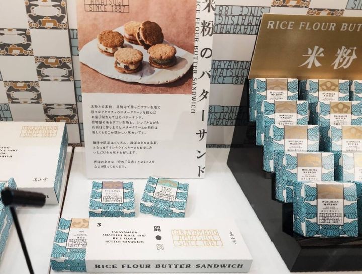 伝統的な和菓子を現代的にアレンジして、和菓子屋さんらしく和素材を使った「米粉のバターサンド」が看板商品です。