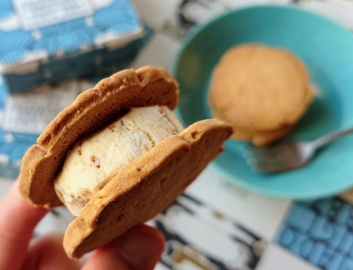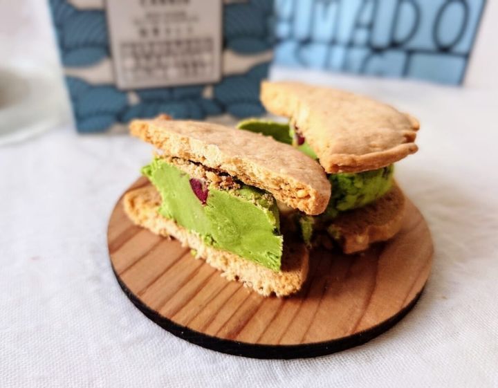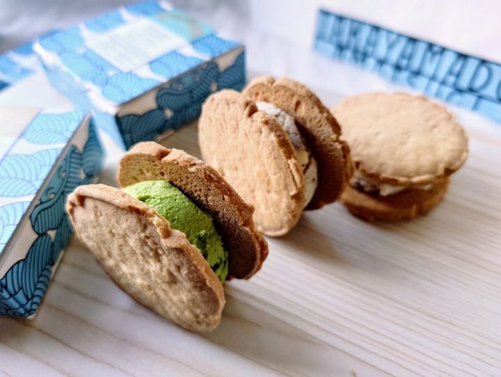 オンライン販売でも購入できて、オンラインでは詰合せBOXの中の種類をお好みに選べます。冷凍状態で届くので冷蔵庫で30〜60分解凍してからいただきます。冷凍状態でも試食しましたが、サクッとしたアイスみたいで、口の温度ですぐ溶けて美味でした!