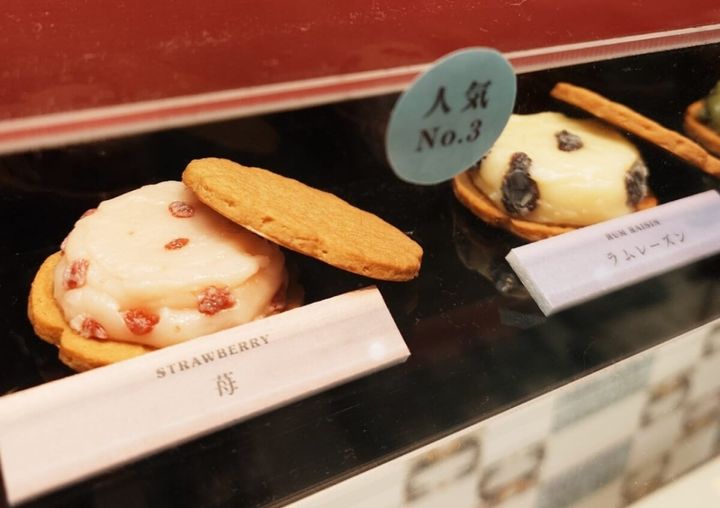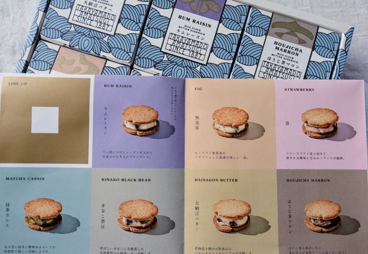 現在は「ラムレーズン・無花果・苺・抹茶カシス・きなこ黒豆・大納言バター・ほうじ茶マロン」の7種類のラインナップ。香料・着色料も無添加で素材のよさを活かし、職人さんがひとつずつ丁寧に作っています(全て香り付けにアルコール成分を含む。「ラムレーズン」にはバニラオイルを使用)。