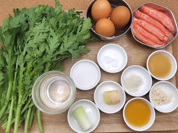 脇屋シェフの「春菊とカニカマの芙蓉蟹」の材料と作り方