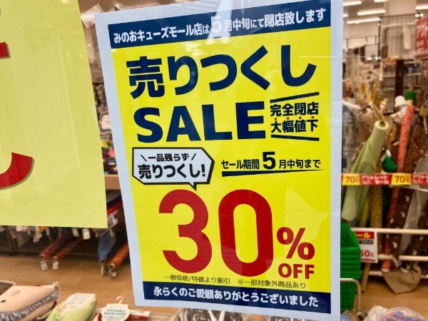 3. 【閉店】箕面「手芸センターGRANDドリーム みのおキューズモール店」 2024年5月中旬閉店