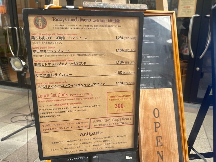 これだけ丁寧に作られたドリンクとお料理をセットで1200円台でいただけると、お得な気分になります。もし平日にランチする機会があればとてもお勧めです。 土日はセットドリンクがプラス440円ですが、休日に前菜盛り合わせやアルコール片手に楽しむランチも気持ちいいものです。暖かくなってきたので、テラス席もいいですね。