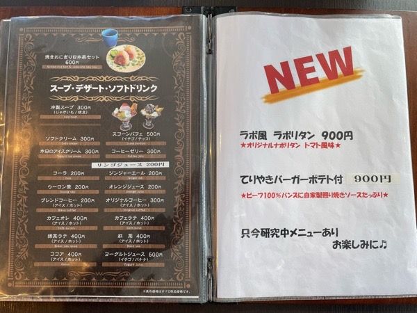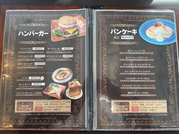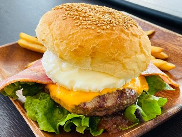 メニューは、こちら。ハンバーガーはスペシャルにすると、ベーコン、目玉焼きがついてボリューム満点。