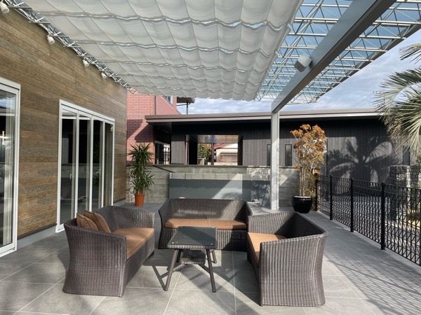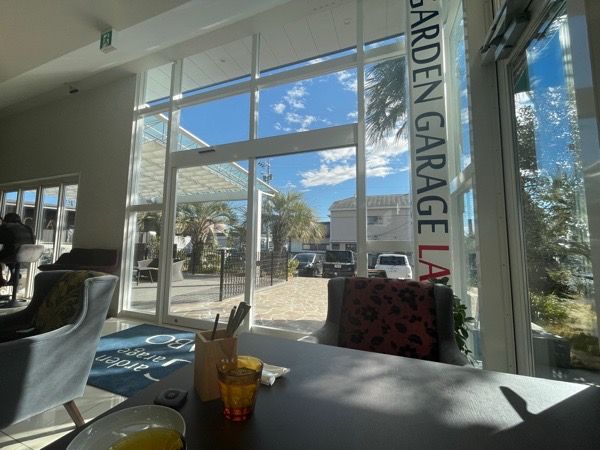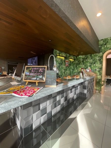 店内から眺める景色もまさに南国!実はこちらのカフェ、さくら市に根付く「株式会社 石川電工」という工事会社が手掛けたカフェ併設のショールームなのです。ガレージ・電気・土木・外構のプロならではのお店造り。圧巻の内装です。