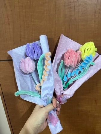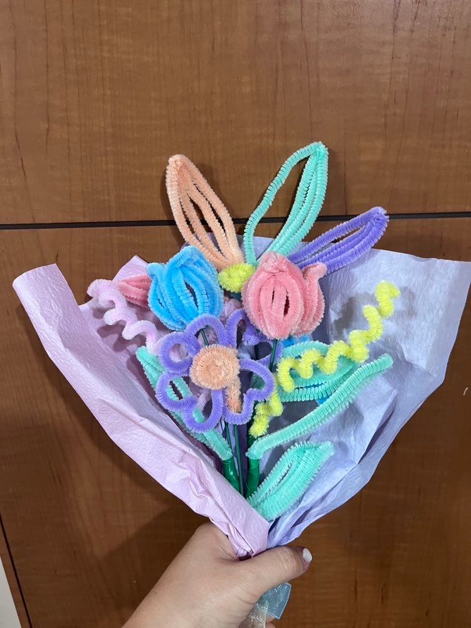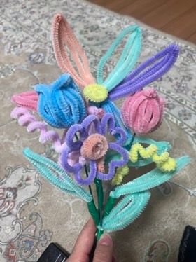 三女もプレゼントを制作開始♪今回はモールでお花を作ることにしました♪