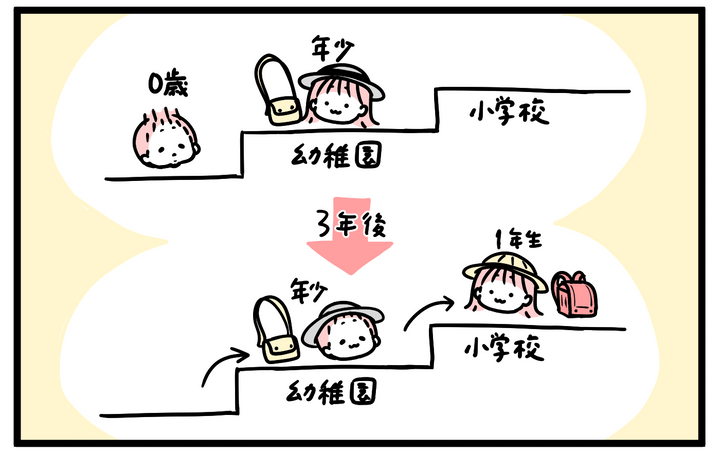 3歳差なので、幼稚園は入れ替わり。イチコの卒園後、二太郎が入園する流れです。