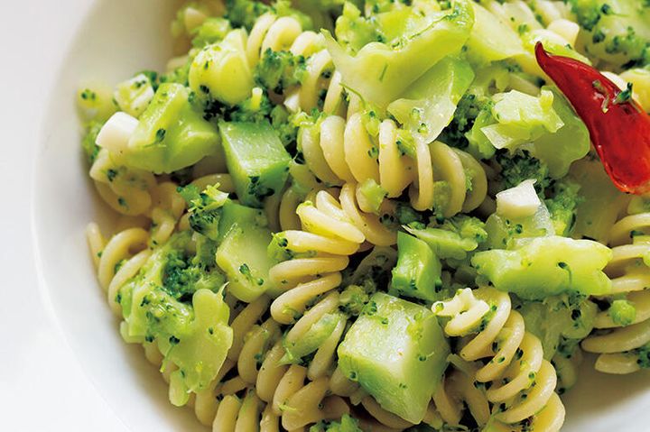 可憐な花蕾が、溝に入り込んでフジッリのおいしさをアップ!甘くてホクホク……。ブロッコリーの茎の魅力に開眼する一皿です。食べると元気になる野菜パスタを食文化研究家である北村光世さんに教えてもらいました。