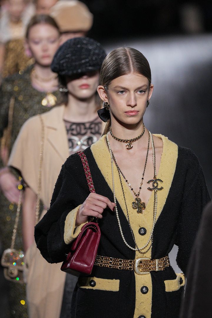 シャネルらしいボックスプリーツのスカートやキュロット、クロップドパンツのツイードスーツ、そしてドロップフロンのパンツ。さらにドーヴィルの風景をモチーフにした厚手のセーラー風ニットやセーラーカラーのシルクブラウスなど、優雅さを備えたピースが並ぶ。アイコニックなバッグなどのアクセサリーも見逃せない。「今回のコレクションは、素材や色、ボリュームを重ね合わせた、とても温かみのあるものになりました。そしてドーヴィルという、ガブリエル・シャネルの運命が永久に変わった伝説の場所でのトリビュートでもあるのです」。