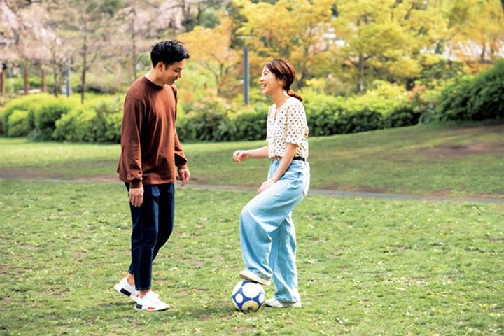 私も夫も学生時代はサッカープレイヤーでした。サッカーをしている共通の友人が繋げてくれたのが出会いのきっかけ。最近は夫の友人が活躍するJリーグを応援中です。
