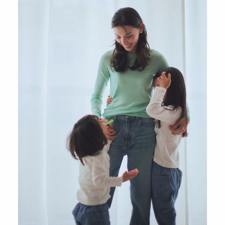 第一子出産後に職場復帰したときは私もなんでも完璧にやりたい派でした。外資系証券会社に産後3カ月で復職し、会社の保育所が近くに完備されていたから、仕事の合間に日に5、6回搾乳して母乳を届ける毎日。母乳で育てたいというより、キャリアも諦めないし、子育てだって抜かりなくできるっていうことを証明したかったのかも。誰に対してかわからないけど(笑)。離乳食もきっちり、育児本に書いてあるとおりに頑張っていましたね。でも振り返ってみて〝それって本当に必要だったの?〟っていうことが多くて。一般的に良きと言われている子育て方法もママ像も、自分のライフスタイルや考え方に合っているのか、いちいち疑ってみるのも面白いなと思ったきっかけです。よって、次女は、ほとんど自己流(笑)。