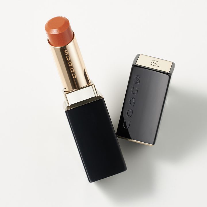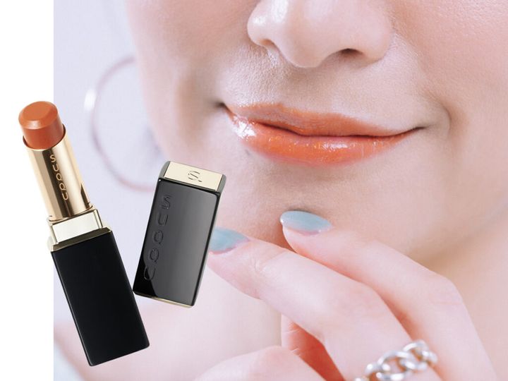 ゴールドを含んだ落ち着きのあるオレンジは、ON/OFF問わず活躍しそう。塗りたてのうるおいが続く、美容液ルージュ。