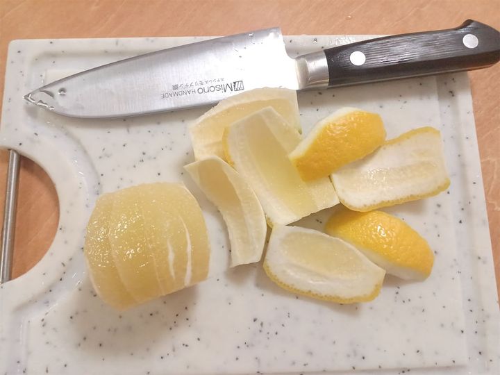 白い部分は苦いので、刃先に注意しながら削ぎ落としてくださいね。