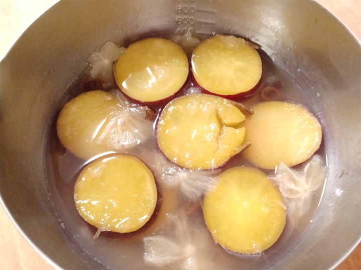さつまいもの色がグッと濃くなり、火が通ってきました。