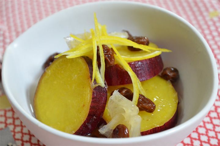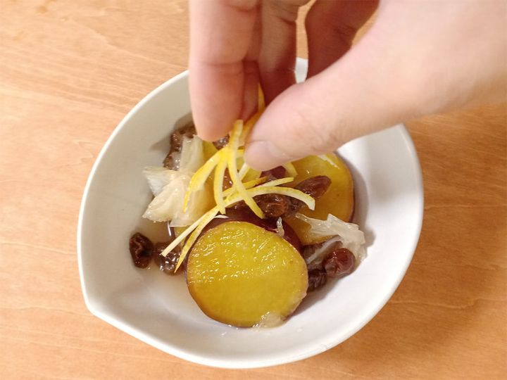 レモンの酸味をしっかり吸ったさつまいもが口の中でホロっと崩れておいしいです。レーズンの自然な甘味もいいアクセントになっています。
