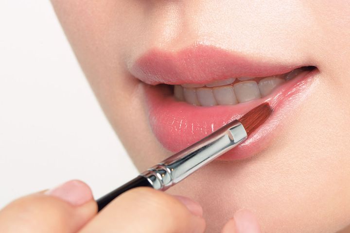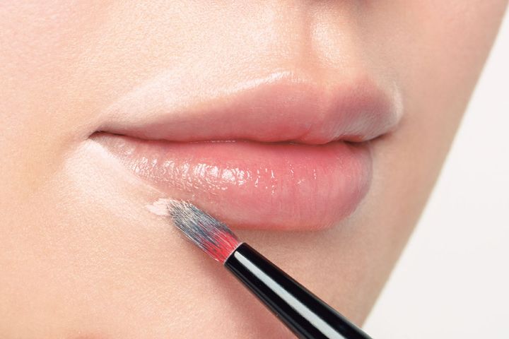 筆で中央から左右に色をボカしていき、口角のところまできちんと伸ばす。コンシーラーでトーンアップしているので、輪郭は縁取らずボカせばOK。