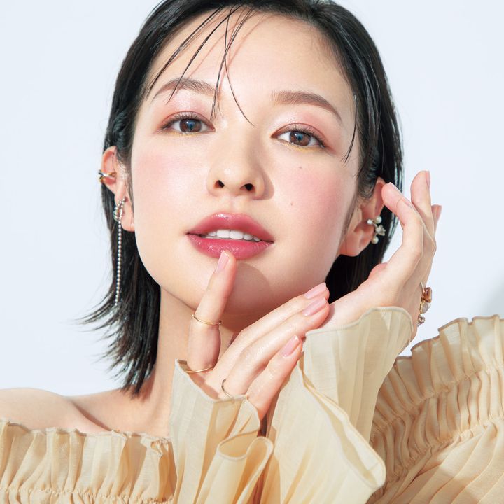 リングカフ[右耳上]¥7,700(Jouete)イヤーカフ[右耳下]¥11,000(アガット)イヤーカフ[左耳]¥29,700 リング[右手人差し指]各¥6,600(ともにステラハリウッド)リング[右手薬指、左手中指]各¥27,500(ともにete bijoux)リング[左手人差し指上から]¥41,800、¥48,400、30,800、¥41,800(すべてヴイエーヴァンドーム青山/ヴイエーヴァンドーム青山有楽町マルイ店)ブラウス(スタイリスト私物)