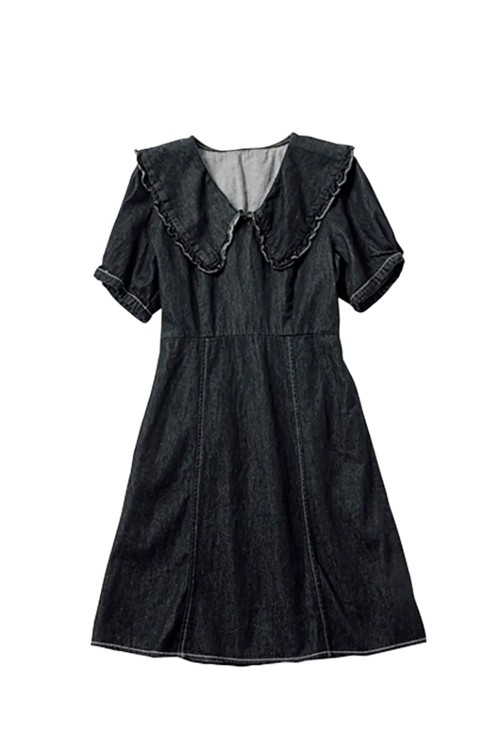 ガーリー要素強めなミニ丈と大きめえりがぷりかわ女子には心強い♡ カジュアルなデニムをキュートに着こなせるアイテム。