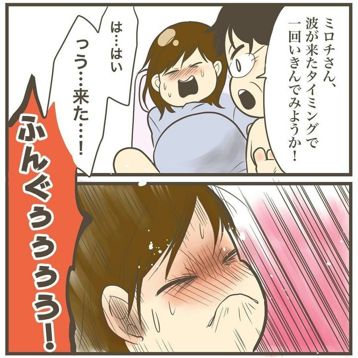 便意がせき止められ、自分の体なのに理解が追いつかないミロチ(@mirochi8989)さん。赤ちゃんが降りてきているかもしれないと説明され、分娩台に向かいました。