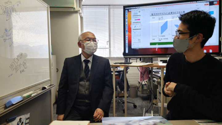 メディア創生学研究室 坂本雄児教授(写真左)と修士1年の榊原汰一さん(同右)