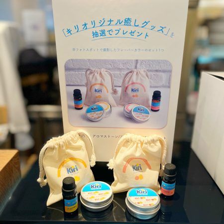 さらに、整理券で1回抽選に参加することができ、期間中100名にオリジナル癒しグッズとして、巾着に入ったアロマストーンとオイルのセットも当たります!