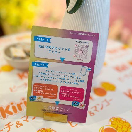 特設のフォトスポットで撮影した写真を自身のInstagramで投稿すると、新商品どちらかのサンプリングと、ここでしか味わえないスペシャルドリンク「キリ レモン&ゆずティー」もしくは「キリ ピーチ&マンゴーティー」のどちらかを無料で楽しめますよ。