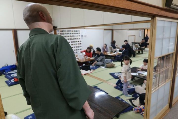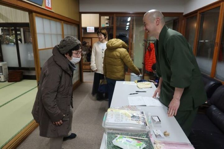 帰厚院の住職、成田賢一さんの声が、大広間に響き渡りました。同寺が毎月第1月曜日の夕方、檀家や地域の住民らにカレーライスを振る舞って親睦を深めるイベント「カレーの日」でのことです。