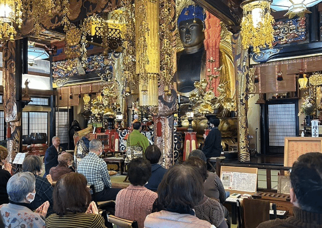 帰厚院では、冬の間、閉められていた本堂の正面玄関が開き、春彼岸法要とおとき(食事会)が行われて、檀家が久しぶりに集いました。
