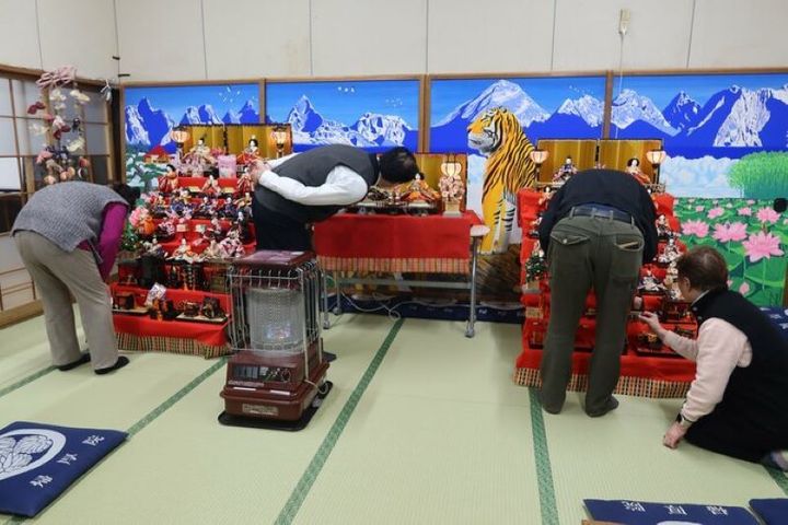 校歌が歌われた3月4日、帰厚院にはひな人形も飾られていました。これらの中には檀家から寄進されたものもあり、参加した人たちが、段飾りされた人形の顔を一つ一つ眺めながらおしゃべりをしていました。