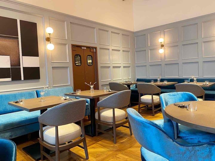レストランゾーンに入ると、鮮やかなソファなどのインテリアがほどよくラグジュアリーな雰囲気を醸すオシャレな空間が広がっていました!カジュアルさも感じられ、軽やかないい気分。