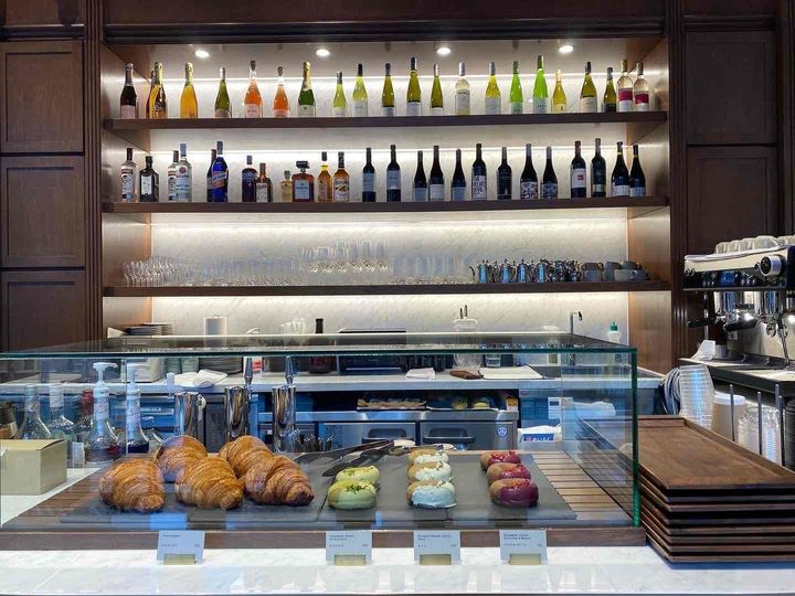 入ってすぐのカフェゾーンには、映えるカウンターとコンパクトなイートインスペースが。
