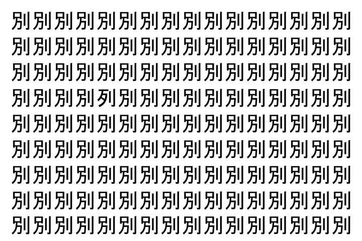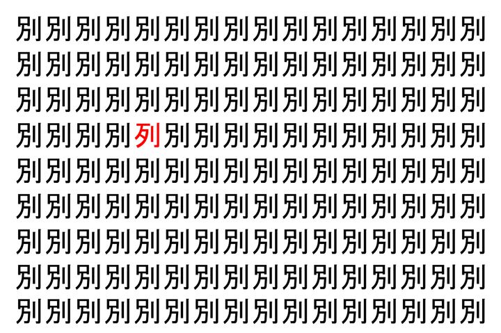 画像の中には、「別」という漢字が縦に9行、横に16個並んでいます。 全部で144個となりますが・・・、そのうち1つは「異なる漢字」となってますよ!!