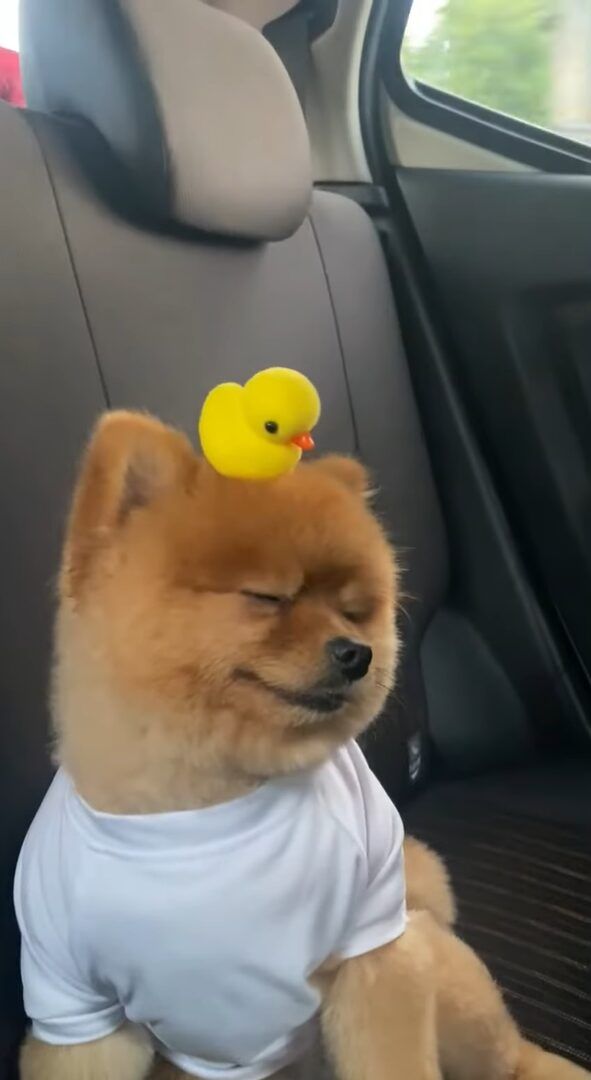 ドライブ中におねむになった子犬。 頭にアヒルのオモチャを乗せたままウトウトするかわいすぎるその様子は、こちらの動画からご覧いただけます!