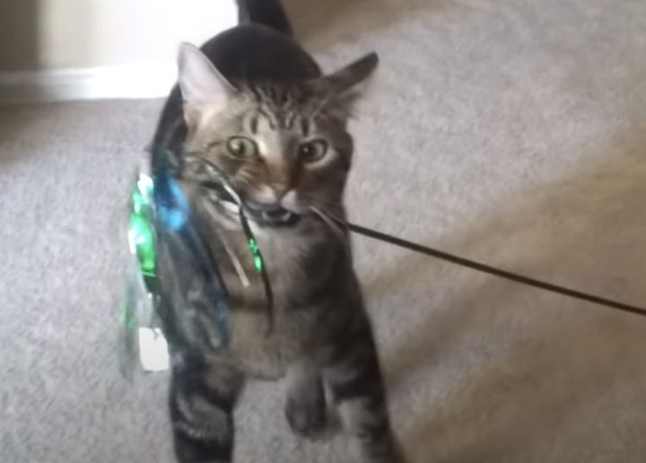 3. 「遊んでよぉ〜!」自分でおもちゃを持って来て催促する猫さん。