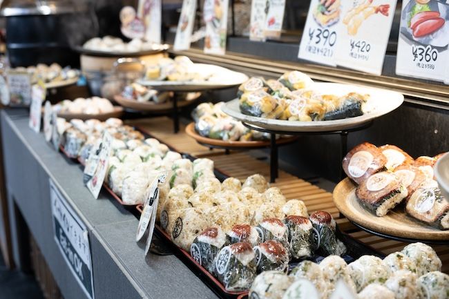 店頭にはできたてのおむすびが20種以上。ほんのり甘い特製かえし醤油がツナとマヨネーズの旨みを引き立てる「かえし醤油の定番ツナマヨ」194円や、鮭のほぐし身の風味が食欲をそそる「7種だし薫る鮭むすび」237円などの三角おむすびもあり、充実したラインナップです。ランチや手土産にぴったりですね。