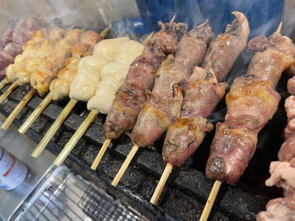 やきとりは、朝締めの銘柄鶏を店員さんが毎日、1本1本丁寧に手仕込みしています。注文すると、店員さんが1本1本丁寧に厳選された土佐備長炭を使って焼いてくれます。店員さんにオススメのやきとりをお聞きすると、レバーともも肉のやきとりだそうですよ。