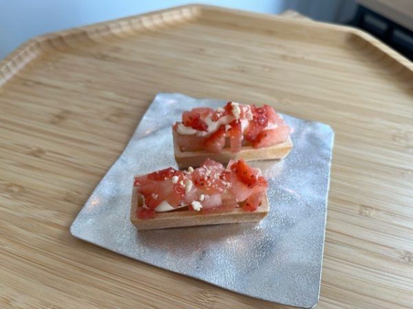 二つ目は、「ひなが最中(580円)」。季節の果物、クリームチーズ、ナッツ、白あんが入っていている贅沢な最中です。今の時期は、苺でしたが、季節によって果物が変わるので要チェックです!