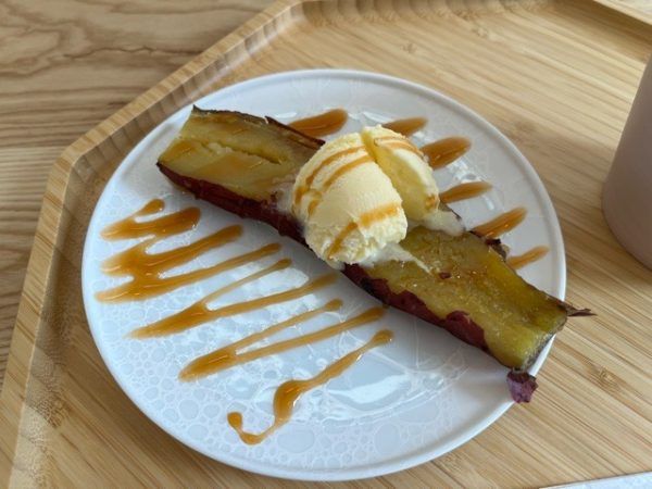 こちらの焼き芋がとろける美味しさで、バニラアイスとキャラメルソースとの相性抜群でした! 人気なのも頷けます。思わず焼き芋の生産地をお伺いしたところ、わたしが以前住んでいた頴娃町のさつまいも農家さんとのことでした。(実は、知り合いの農家さんでした)