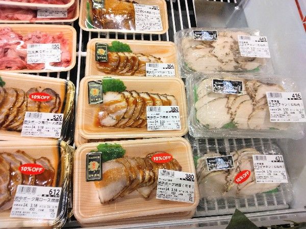 定休日が水曜日なので火曜日の夕方以降はガラスケース内の肉が全て割引きに。火曜日や夕方以外でも、タイミングがいいとタイムサービスに当たります。