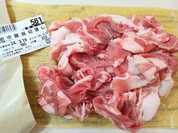 豚肩切り落としは100g180円と値段的にはお得感は少なめかもしれません、肉の旨みが違うので食すると満足感とお得感を味わえます。
