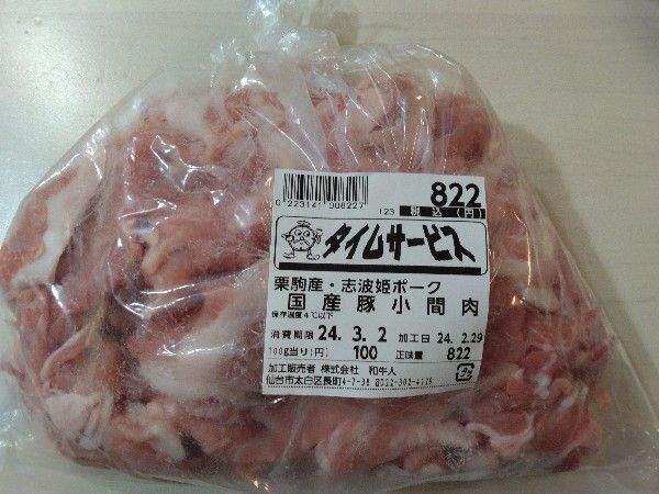 タイムサービスで豚小間肉100g 100円