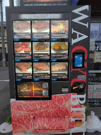 みやぎ生協長町店の前の信号を渡ると、すぐそこに『和牛人はらだ』があります。入口には肉の自動販売機もあります。(気になりますよね。キリタは挑戦できず店内で購入してしまいますが、肉屋さんの自動販売機ですから間違いないはず)