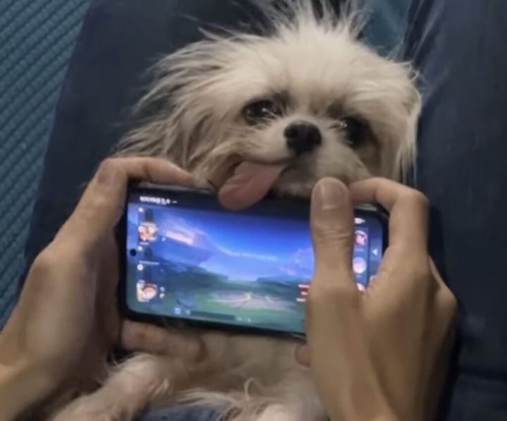スマホ画面に愛犬の舌が それでも絶対動かない、頑固なふたり。