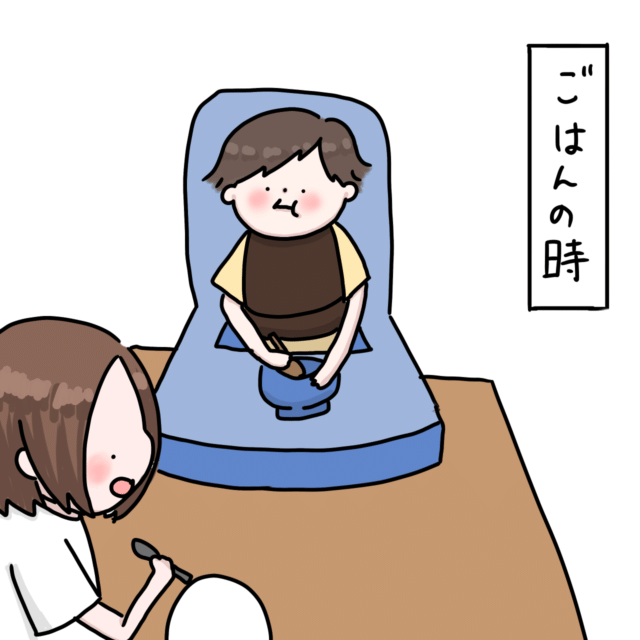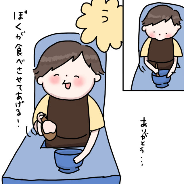 この日はお母さんに食べさせてあげる~とスプーンですくってアーン待ちしてました。