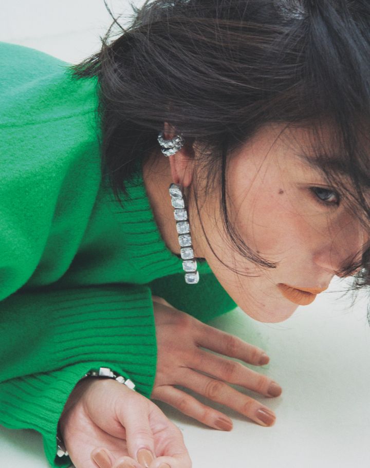 イヤーカフ各¥49,500、ピアス¥129,800、ブレスレット¥361,900、メンズニット¥130,900(全てジル サンダー バイ ルーシー アンド ルーク・メイヤー/ジルサンダージャパン)