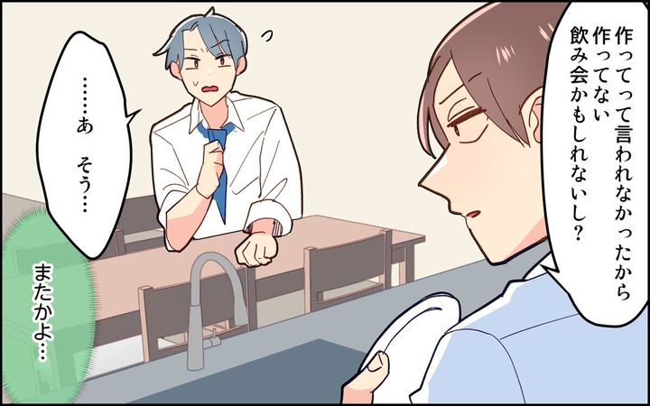 ある日の休日の朝、俊貴が起きると、娘も妻もいなく…。二人だけでテーマパークに行っていたのでした。妻に「前もって教えてくれたって…」と言うと「あなたがソレを言うの?」と鼻で笑われてしまうのでした。今までの自分の行いを顧みた俊貴は、愛想をつかされていることに気が付くのでした。しかも、洗い物をしていると娘に驚かれ…。