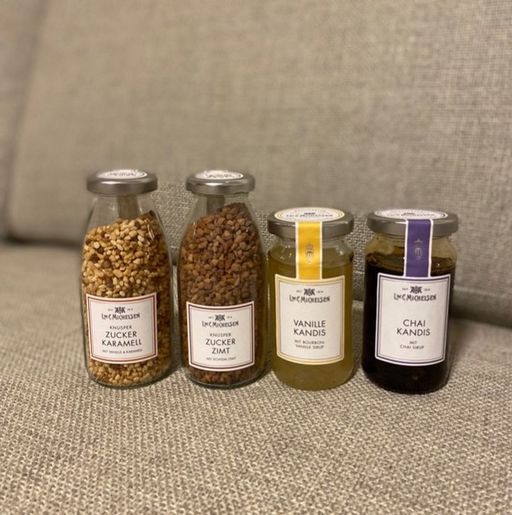北ドイツの都市ハンブルグのデリカデッセンの老舗店が製造しているL.W.C. ミヒェルゼンのキャンディス。日本でもカルディなどで販売されているそうですが、品数や種類の豊富さ、値段の安さからドイツで購入をオススメしたい商品。そもそもキャンディスとはドイツ語で氷砂糖のことを指します。ドイツでは紅茶に氷砂糖を入れて楽しむことが一般的で、ミフェルゼンのキャンディスが好まれることが多いそう。フレーバーは実に豊富で、チャイやローズ、ラムにバニラ、さらにはキャラメルまであり、ティータイムをより豊かにしてくれると大人気! 氷砂糖のシロップ漬けのほかに、色鮮やかなフレーバーシュガーもオススメです。日本の販売価格よりも半分の値段で購入できると人気を呼んでいます。